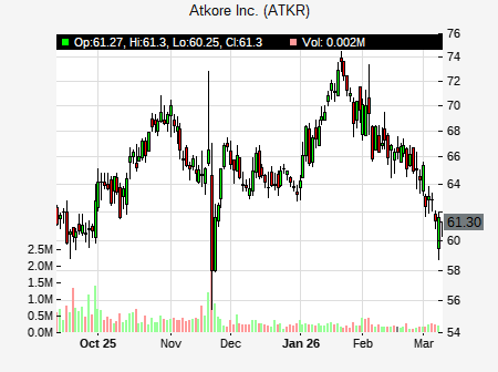 Roth Capital analyst issues BUY recommendation for ATKR on February 4, 2026 02:58PM ET. The previous analyst recommendation was Buy. ATKR was trading at $70.505 at issue of the analyst recommendation. The overall analyst consensus : HOLD. Current analyst recommendations are : 4 - Buy, 7 - Hold recommendations .