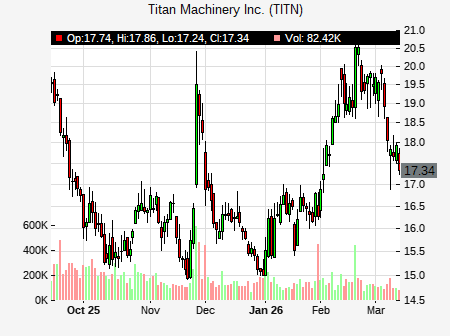 from Robert W. Baird issued a price target of $21.00 for TITN on 2025-12-01 09:46:53. The adjusted price target was set to $21.00. At the time of the announcement, TITN was trading at $18.52. The overall price target consensus is at $21.25 with high price of $30.00, low price of $15.00, and median price is at $20.00. TITN currently trades -22.01% versus its 52 week high of $23.41, and 12.50% compared to its 52 week low price of $12.50. Current 50 day moving average is $16.36, and the 200 day moving average is $17.99.