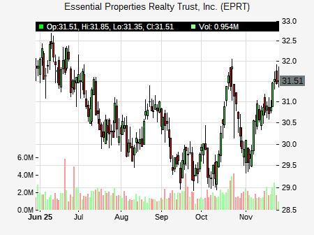 Nicholas Yulico from Scotiabank issued a price target of $34.00 for EPRT on 2025-11-25 15:22:01. The adjusted price target was set to $34.00. At the time of the announcement, EPRT was trading at $31.82. The overall price target consensus is at $36.00 with high price of $36.00, low price of $36.00, and median price is at $36.00. EPRT currently trades -5.16% versus its 52 week high of $33.57, and 27.54% compared to its 52 week low price of $27.54. Current 50 day moving average is $30.21, and the 200 day moving average is $30.76.