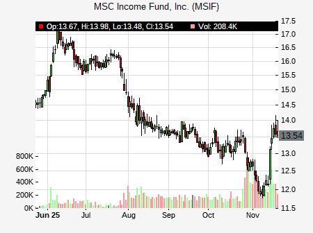 from JMP Securities issued a price target of $15.00 for MSIF on 2025-11-17 09:38:34. The adjusted price target was set to $15.00. At the time of the announcement, MSIF was trading at $13.13. The overall price target consensus is at $15.25 with high price of $16.00, low price of $14.50, and median price is at $15.25. MSIF currently trades -23.73% versus its 52 week high of $17.21, and 11.82% compared to its 52 week low price of $11.82. Current 50 day moving average is $13.16, and the 200 day moving average is $14.72.