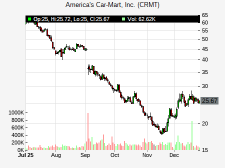 John Hecht from Jefferies issued a price target of $29.00 for CRMT on 2025-12-29 20:47:49. The adjusted price target was set to $29.00. At the time of the announcement, CRMT was trading at $25.24. The overall price target consensus is at $67.67 with high price of $113.00, low price of $45.00, and median price is at $45.00. CRMT currently trades -59.84% versus its 52 week high of $62.72, and 17.90% compared to its 52 week low price of $17.90. Current 50 day moving average is $25.05, and the 200 day moving average is $42.31.