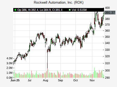 from Robert W. Baird issued a price target of $402.00 for ROK on 2025-11-21 13:35:19. The adjusted price target was set to $402.00. At the time of the announcement, ROK was trading at $371.26. The overall price target consensus is at $371.50 with high price of $391.00, low price of $345.00, and median price is at $375.00. ROK currently trades -6.28% versus its 52 week high of $396.75, and 214.34% compared to its 52 week low price of $214.34. Current 50 day moving average is $355.21, and the 200 day moving average is $314.46.