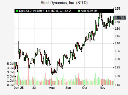 Andrew Jones from UBS issued a price target of $158.00 for STLD on 2025-10-21 13:18:00. The adjusted price target was set to $158.00. At the time of the announcement, STLD was trading at $147.625. The overall price target consensus is at $140.00 with high price of $140.00, low price of $140.00, and median price is at $140.00. STLD currently trades -2.92% versus its 52 week high of $153.17, and 105.37% compared to its 52 week low price of $105.37. Current 50 day moving average is $135.46, and the 200 day moving average is $128.84.