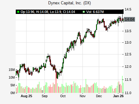 from BTIG issued a price target of $16.00 for DX on 2026-01-09 17:23:17. The adjusted price target was set to $16.00. At the time of the announcement, DX was trading at $14.1056. The overall price target consensus is at $13.25 with high price of $13.25, low price of $13.25, and median price is at $13.25. DX currently trades 2.10% versus its 52 week high of $13.81, and 9.97% compared to its 52 week low price of $9.97. Current 50 day moving average is $12.83, and the 200 day moving average is $11.94.