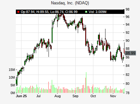 Patrick O'Shaughnessy from Raymond James issued a price target of $100.00 for NDAQ on 2025-10-13 10:19:14. The adjusted price target was set to $100.00. At the time of the announcement, NDAQ was trading at $88.9. The overall price target consensus is at $100.40 with high price of $108.00, low price of $90.00, and median price is at $100.00. NDAQ currently trades -8.69% versus its 52 week high of $97.36, and 65.73% compared to its 52 week low price of $65.73. Current 50 day moving average is $92.53, and the 200 day moving average is $83.46.