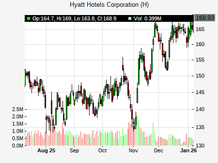 Richard Clarke from Bernstein issued a price target of $188.00 for H on 2026-01-02 13:23:00. The adjusted price target was set to $188.00. At the time of the announcement, H was trading at $162.87. The overall price target consensus is at $171.20 with high price of $200.00, low price of $156.00, and median price is at $164.00. H currently trades -2.79% versus its 52 week high of $167.49, and 102.94% compared to its 52 week low price of $102.94. Current 50 day moving average is $146.60, and the 200 day moving average is $136.71.