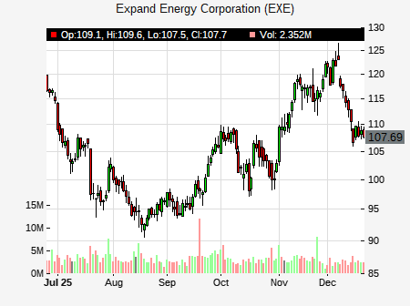 from Scotiabank issued a price target of $150.00 for EXE on 2025-10-09 14:21:21. The adjusted price target was set to $150.00. At the time of the announcement, EXE was trading at $106.84. The overall price target consensus is at $130.83 with high price of $136.00, low price of $118.00, and median price is at $135.00. EXE currently trades -12.29% versus its 52 week high of $121.48, and 81.82% compared to its 52 week low price of $81.82. Current 50 day moving average is $99.17, and the 200 day moving average is $103.82.