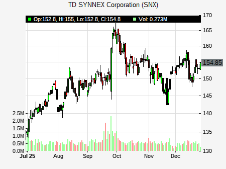from Morgan Stanley issued a price target of $181.00 for SNX on 2025-09-26 10:51:50. The adjusted price target was set to $181.00. At the time of the announcement, SNX was trading at $159.69. The overall price target consensus is at $163.25 with high price of $175.00, low price of $140.00, and median price is at $169.00. SNX currently trades -0.14% versus its 52 week high of $159.92, and 92.28% compared to its 52 week low price of $92.28. Current 50 day moving average is $147.88, and the 200 day moving average is $130.83.