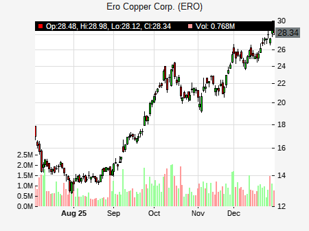 Vitaly Kononov from Loop Capital Markets issued a price target of $32.00 for ERO on 2025-12-30 05:32:00. The adjusted price target was set to $32.00. At the time of the announcement, ERO was trading at $27.52. The overall price target consensus is at $25.00 with high price of $25.00, low price of $25.00, and median price is at $25.00. ERO currently trades 12.32% versus its 52 week high of $24.48, and 9.39% compared to its 52 week low price of $9.39. Current 50 day moving average is $21.00, and the 200 day moving average is $15.60.