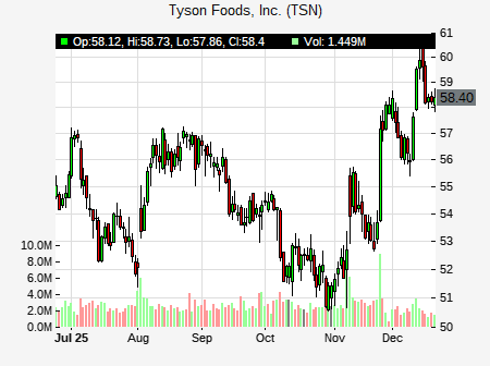 Piper Sandler analyst issues NEUTRAL recommendation for TSN on December 12, 2025 12:03PM ET. The previous analyst recommendation was Neutral. TSN was trading at $59.56 at issue of the analyst recommendation. The overall analyst consensus : HOLD. Current analyst recommendations are : 12 - Buy, 16 - Hold, 1 - Sell recommendations .