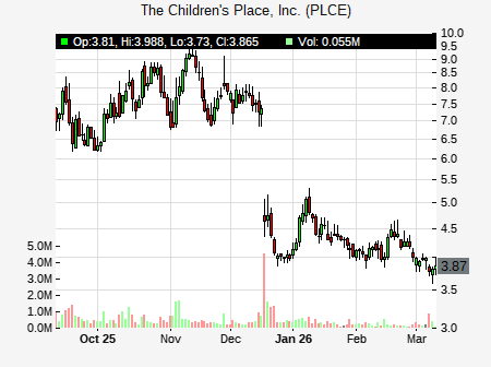 from UBS issued a price target of $8.00 for PLCE on 2025-11-04 12:36:34. The adjusted price target was set to $8.00. At the time of the announcement, PLCE was trading at $6.82. The overall price target consensus is at $18.75 with high price of $48.00, low price of $7.00, and median price is at $10.00. PLCE currently trades -60.15% versus its 52 week high of $17.19, and 3.75% compared to its 52 week low price of $3.75. Current 50 day moving average is $6.87, and the 200 day moving average is $6.66.
