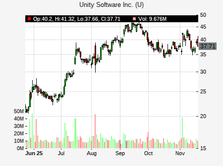 from Cannonball Research issued a price target of $54.00 for U on 2025-11-20 17:41:34. The adjusted price target was set to $54.00. At the time of the announcement, U was trading at $38.33. The overall price target consensus is at $38.23 with high price of $48.00, low price of $27.00, and median price is at $39.50. U currently trades -18.56% versus its 52 week high of $46.94, and 16.00% compared to its 52 week low price of $16.00. Current 50 day moving average is $39.52, and the 200 day moving average is $29.76.
