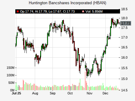 from RBC Capital issued a price target of $20.00 for HBAN on 2025-12-19 14:24:16. The adjusted price target was set to $20.00. At the time of the announcement, HBAN was trading at $17.625. The overall price target consensus is at $19.00 with high price of $23.00, low price of $16.00, and median price is at $18.00. HBAN currently trades -2.65% versus its 52 week high of $18.11, and 11.89% compared to its 52 week low price of $11.89. Current 50 day moving average is $16.18, and the 200 day moving average is $15.79.