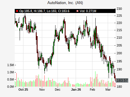 Colin Langan from Wells Fargo issued a price target of $230.00 for AN on 2026-02-08 20:53:22. The adjusted price target was set to $230.00. At the time of the announcement, AN was trading at $216.65. The overall price target consensus is at $252.00 with high price of $300.00, low price of $230.00, and median price is at $239.00. AN currently trades -5.29% versus its 52 week high of $228.92, and 148.33% compared to its 52 week low price of $148.33. Current 50 day moving average is $205.67, and the 200 day moving average is $197.37.
