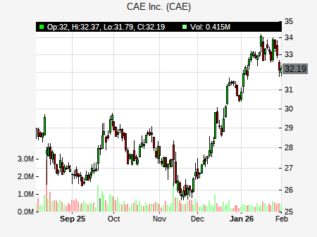 Scotiabank analyst issues OUTPERFORM recommendation for CAE on January 21, 2026 04:06PM ET. The previous analyst recommendation was Outperform. CAE was trading at $32.945 at issue of the analyst recommendation. The overall analyst consensus : BUY. Current analyst recommendations are : 9 - Buy, 8 - Hold recommendations .