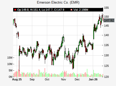 Evercore ISI analyst issues OUTPERFORM recommendation for EMR on December 15, 2025 12:14PM ET. EMR was trading at $136.6425 at issue of the analyst recommendation. The overall analyst consensus : BUY. Current analyst recommendations are : 21 - Buy, 16 - Hold, 3 - Sell recommendations .
