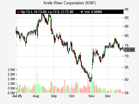 from Oppenheimer issued a price target of $100.00 for KNF on 2025-10-01 11:55:57. The adjusted price target was set to $100.00. At the time of the announcement, KNF was trading at $76.87. The overall price target consensus is at $129.00 with high price of $129.00, low price of $129.00, and median price is at $129.00. KNF currently trades -29.36% versus its 52 week high of $108.83, and 71.49% compared to its 52 week low price of $71.49. Current 50 day moving average is $82.21, and the 200 day moving average is $90.83.