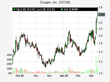 Oppenheimer analyst issues OUTPERFORM recommendation for OCGN on March 11, 2026 08:21PM ET. OCGN was trading at $2.3 at issue of the analyst recommendation. The overall analyst consensus : BUY. Current analyst recommendations are : 4 - Buy, 1 - Hold recommendations .