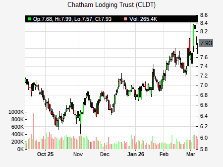 Simon Yarmak from Stifel Nicolaus issued a price target of $8.75 for CLDT on 2026-02-25 17:49:37. The adjusted price target was set to $8.75. At the time of the announcement, CLDT was trading at $7.285. The overall price target consensus is at $15.50 with high price of $19.00, low price of $12.00, and median price is at $15.50. CLDT currently trades -23.65% versus its 52 week high of $9.55, and 5.85% compared to its 52 week low price of $5.85. Current 50 day moving average is $6.59, and the 200 day moving average is $6.97.