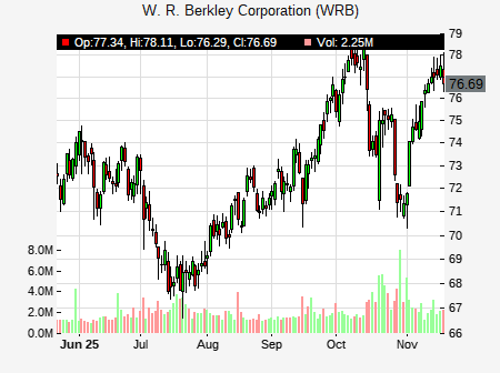from BMO Capital issued a price target of $64.00 for WRB on 2025-10-22 09:11:53. The adjusted price target was set to $64.00. At the time of the announcement, WRB was trading at $75. The overall price target consensus is at $77.83 with high price of $87.00, low price of $66.00, and median price is at $78.50. WRB currently trades -4.43% versus its 52 week high of $78.48, and 55.94% compared to its 52 week low price of $55.94. Current 50 day moving average is $73.70, and the 200 day moving average is $68.43.