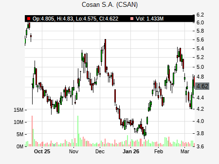 Lilyanna Yang from HSBC issued a price target of $4.40 for CSAN on 2025-09-22 13:11:59. The adjusted price target was set to $4.40. At the time of the announcement, CSAN was trading at $4.65. CSAN currently trades -54.05% versus its 52 week high of $10.12, and 3.85% compared to its 52 week low price of $3.85. Current 50 day moving average is $4.55, and the 200 day moving average is $5.17.