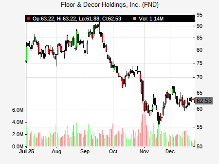 Joseph Feldman from Telsey Advisory issued a price target of $80.00 for FND on 2025-12-17 15:48:42. The adjusted price target was set to $80.00. At the time of the announcement, FND was trading at $61.075. The overall price target consensus is at $76.75 with high price of $80.00, low price of $74.00, and median price is at $76.50. FND currently trades -50.28% versus its 52 week high of $122.90, and 55.83% compared to its 52 week low price of $55.83. Current 50 day moving average is $68.91, and the 200 day moving average is $77.82.