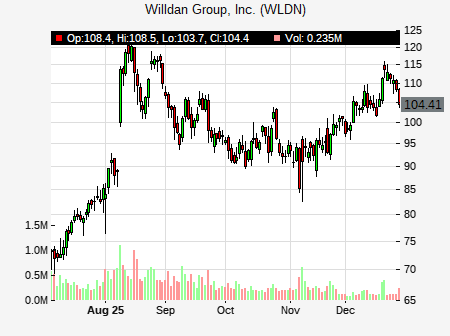 from Compass Point issued a price target of $125.00 for WLDN on 2026-01-02 11:03:12. The adjusted price target was set to $125.00. At the time of the announcement, WLDN was trading at $103.66. The overall price target consensus is at $103.00 with high price of $103.00, low price of $103.00, and median price is at $103.00. WLDN currently trades -13.71% versus its 52 week high of $121.00, and 30.79% compared to its 52 week low price of $30.79. Current 50 day moving average is $95.38, and the 200 day moving average is $70.57.
