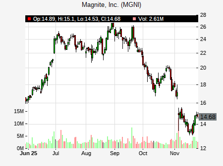 Nat Schindler from Scotiabank issued a price target of $30.00 for MGNI on 2025-08-07 14:28:48. The adjusted price target was set to $30.00. At the time of the announcement, MGNI was trading at $21.56. The overall price target consensus is at $24.00 with high price of $24.00, low price of $24.00, and median price is at $24.00. MGNI currently trades -14.40% versus its 52 week high of $25.27, and 8.60% compared to its 52 week low price of $8.60. Current 50 day moving average is $20.92, and the 200 day moving average is $16.36.