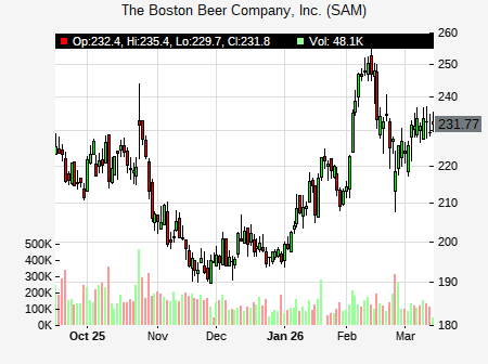 Bernstein analyst issues MARKET PERFORM recommendation for SAM on July 28, 2025 03:13PM ET. The previous analyst recommendation was Market Perform. SAM was trading at $207.29 at issue of the analyst recommendation. The overall analyst consensus : HOLD. Current analyst recommendations are : 7 - Buy, 21 - Hold, 3 - Sell recommendations .
