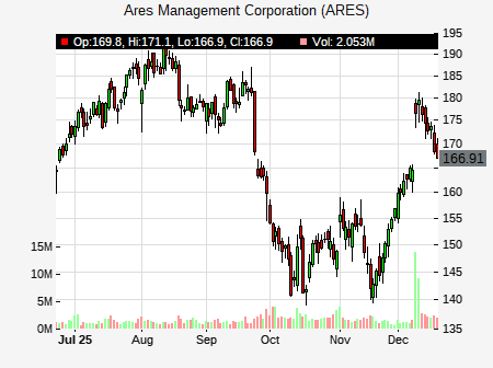 Barclays analyst issues OVERWEIGHT recommendation for ARES on December 12, 2025 10:56AM ET. The previous analyst recommendation was Overweight. ARES was trading at $176.82 at issue of the analyst recommendation. The overall analyst consensus : BUY. Current analyst recommendations are : 15 - Buy, 5 - Hold recommendations .