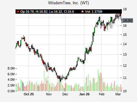Michael Cyprys from Morgan Stanley issued a price target of $16.75 for WT on 2026-02-10 13:39:07. The adjusted price target was set to $16.75. At the time of the announcement, WT was trading at $16.18. The overall price target consensus is at $17.81 with high price of $21.00, low price of $14.75, and median price is at $17.75. WT currently trades 9.26% versus its 52 week high of $14.92, and 7.56% compared to its 52 week low price of $7.56. Current 50 day moving average is $12.56, and the 200 day moving average is $11.12.