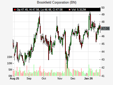 from Morgan Stanley issued a price target of $58.00 for BN on 2026-01-27 12:43:59. The adjusted price target was set to $58.00. At the time of the announcement, BN was trading at $46.98. The overall price target consensus is at $64.00 with high price of $82.00, low price of $49.00, and median price is at $58.00. BN currently trades -5.07% versus its 52 week high of $49.41, and 28.95% compared to its 52 week low price of $28.95. Current 50 day moving average is $45.59, and the 200 day moving average is $41.69.