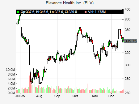 from Morgan Stanley issued a price target of $352.00 for ELV on 2025-12-18 12:54:22. The adjusted price target was set to $352.00. At the time of the announcement, ELV was trading at $345.96. The overall price target consensus is at $389.63 with high price of $420.00, low price of $343.00, and median price is at $399.00. ELV currently trades -23.95% versus its 52 week high of $454.26, and 272.82% compared to its 52 week low price of $272.82. Current 50 day moving average is $331.73, and the 200 day moving average is $358.35.