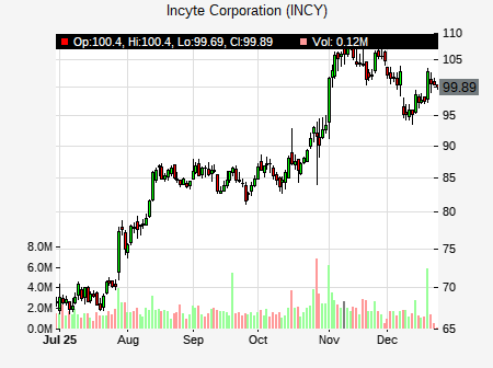 Srikripa Devarakonda from Truist Financial issued a price target of $103.00 for INCY on 2025-12-24 12:08:24. The adjusted price target was set to $103.00. At the time of the announcement, INCY was trading at $100.91. The overall price target consensus is at $98.88 with high price of $121.00, low price of $68.00, and median price is at $97.50. INCY currently trades -7.74% versus its 52 week high of $109.28, and 55.60% compared to its 52 week low price of $55.60. Current 50 day moving average is $92.94, and the 200 day moving average is $75.43.