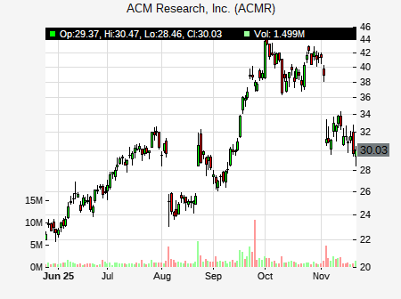 from Roth Capital issued a price target of $50.00 for ACMR on 2025-09-29 15:47:28. The adjusted price target was set to $50.00. At the time of the announcement, ACMR was trading at $38.3924. The overall price target consensus is at $21.73 with high price of $30.00, low price of $17.65, and median price is at $20.00. ACMR currently trades -4.33% versus its 52 week high of $40.10, and 14.36% compared to its 52 week low price of $14.36. Current 50 day moving average is $29.57, and the 200 day moving average is $24.16.